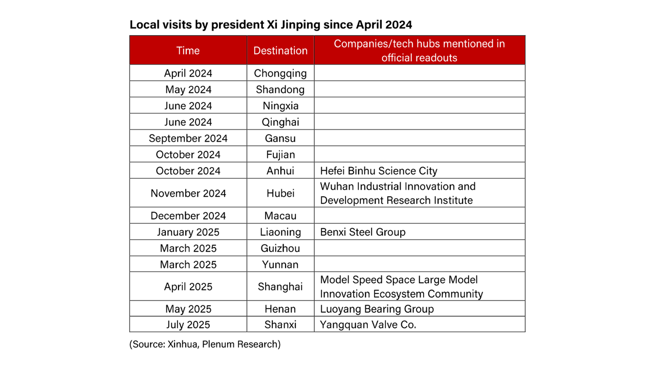President Xi’s inspection trips in the past 18 months included fewer meetings with individual companies.